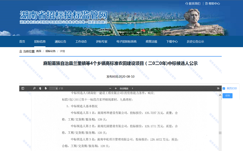 喜讯,公司中标“麻阳苗族自治县兰里镇等4个乡镇高标准农田建设项目(二0二0年)第11标段”项目