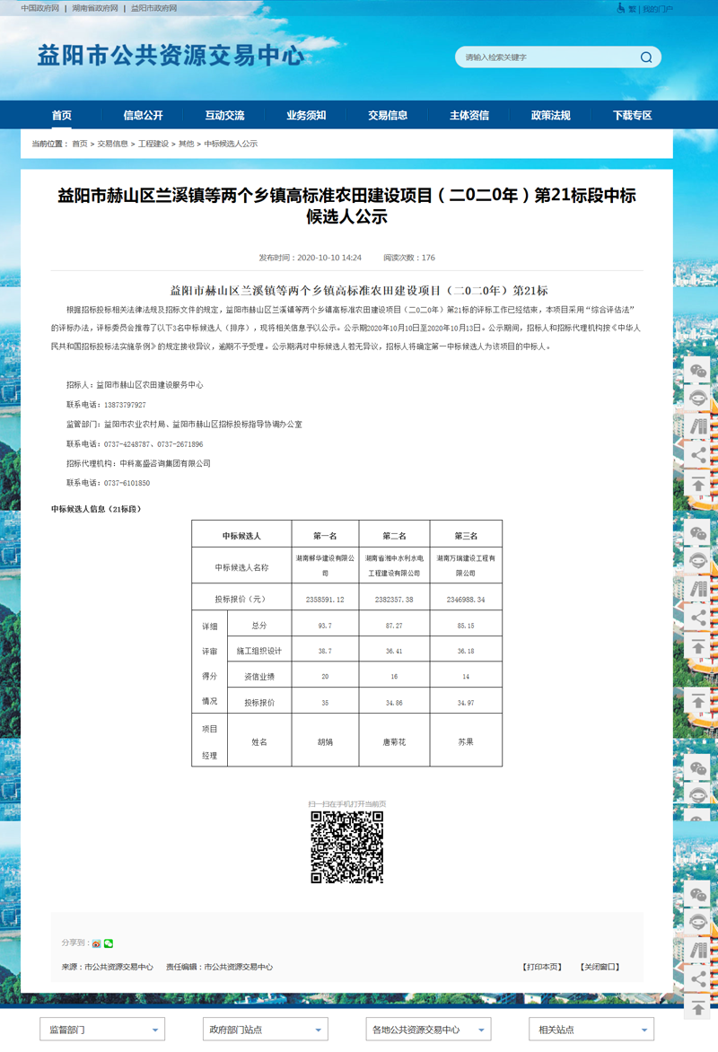 喜讯,公司中标“益阳市赫山区兰溪镇等两个乡镇高标准农田建设项目(二0二0年)第二十一标段”项目