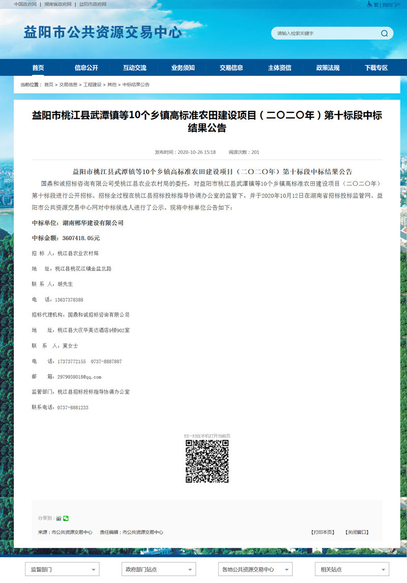 喜讯,公司中标“益阳市桃江县武潭镇等10个乡镇高标准农田建设项目(二〇二〇年)十标”项目