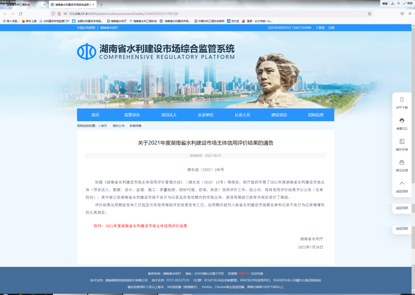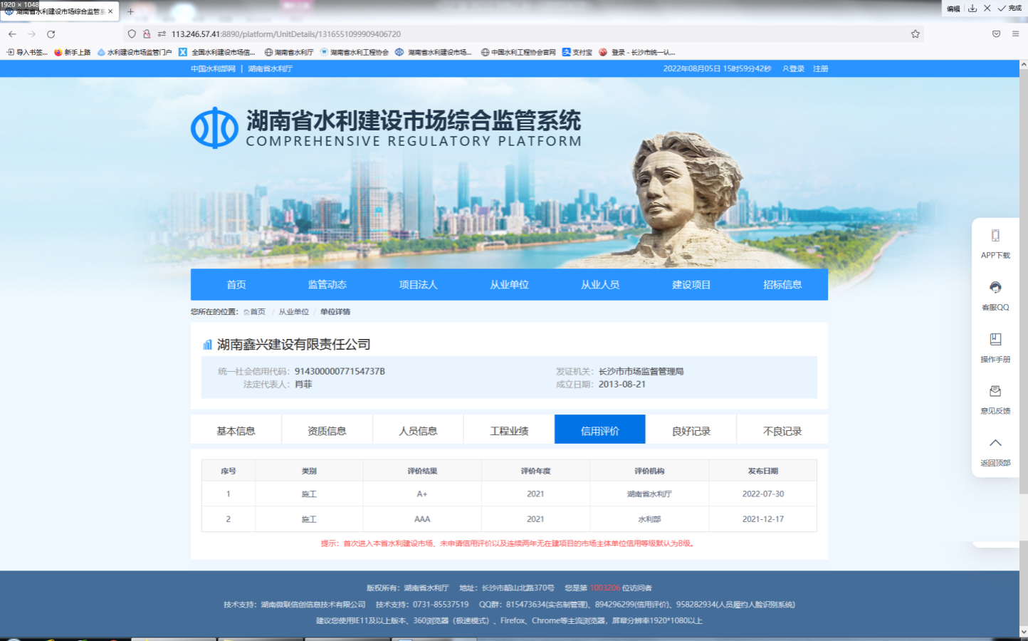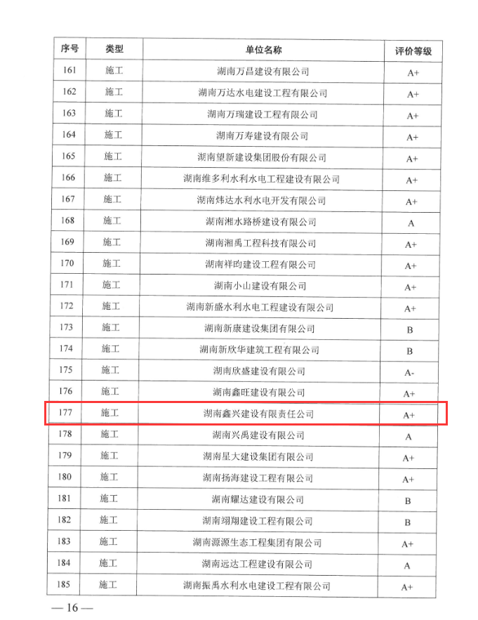 2021年度湖南省水利建设市场主体信用评价等级A+